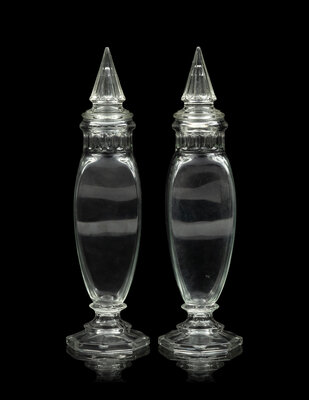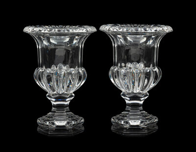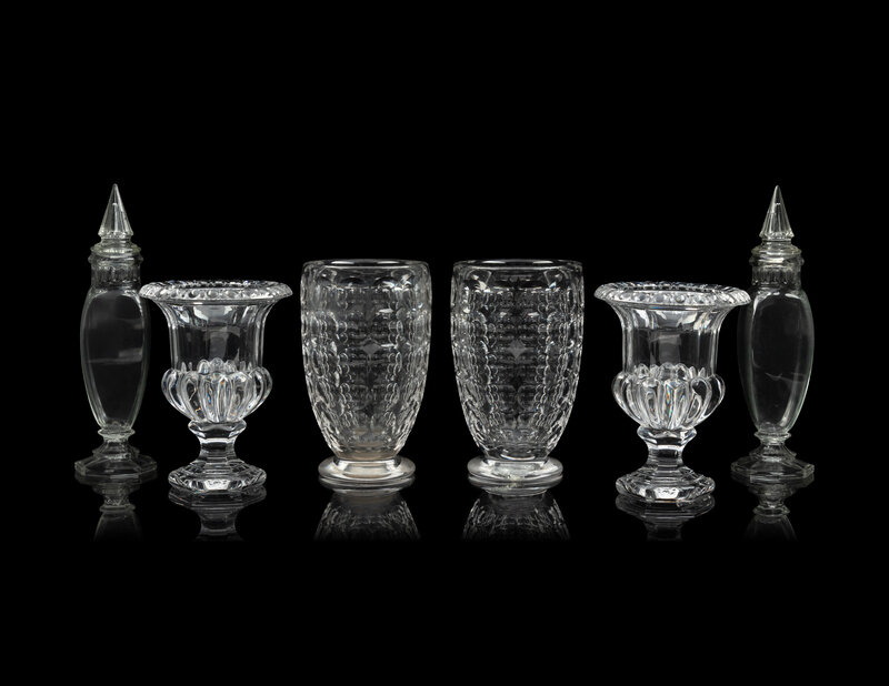 one pair of campagna form, one pair of baluster form with covers, and one pair of tapering form with concave bosses; 6 items total.