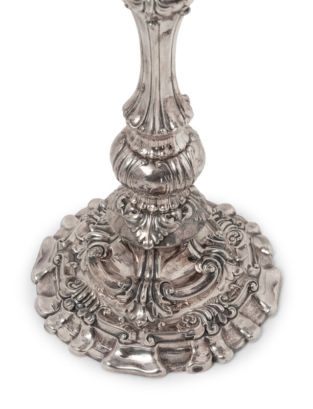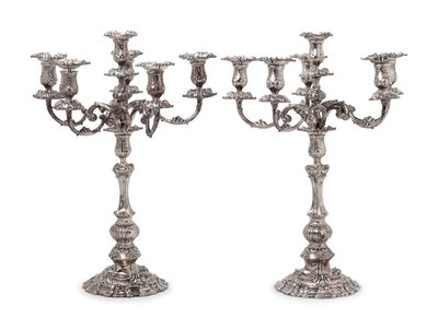 A Pair of Tiffany and Co. Silver-Plate Six-Light Candelabra