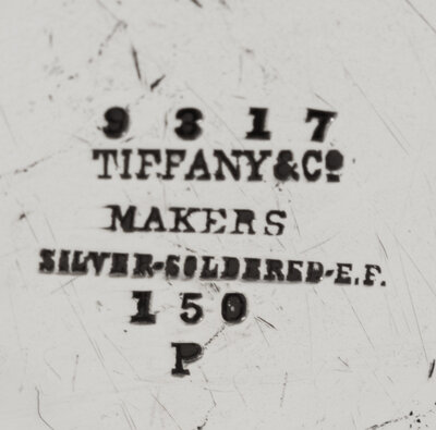 each marked 'Tiffany and Co./ Silver-Soldered' and numbered '9317' '150 / P' and '18365' '170 / Q' respectively on underside.