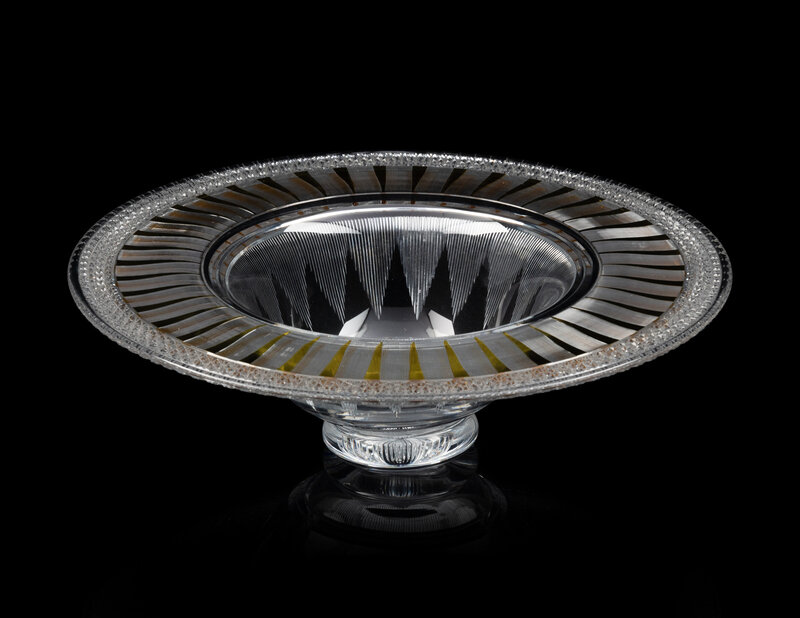 A Yellow Overlay Cut Glass Center Bowl
