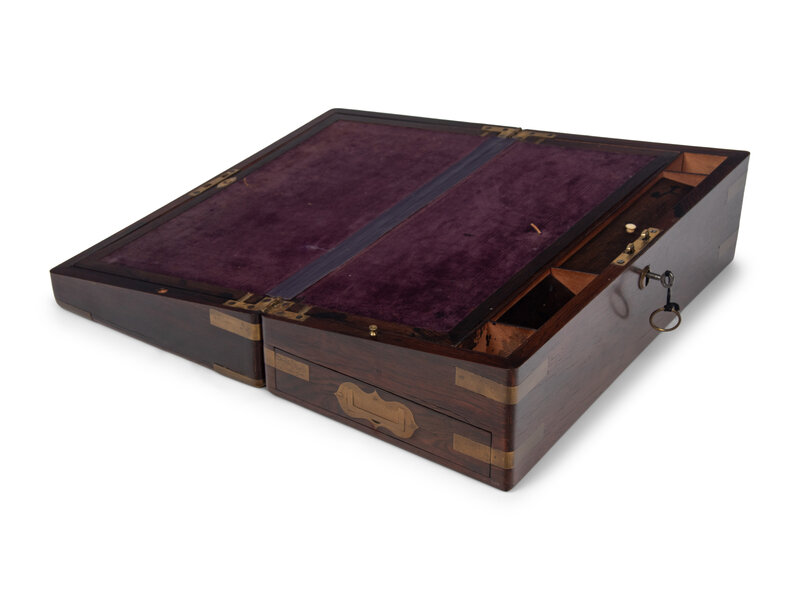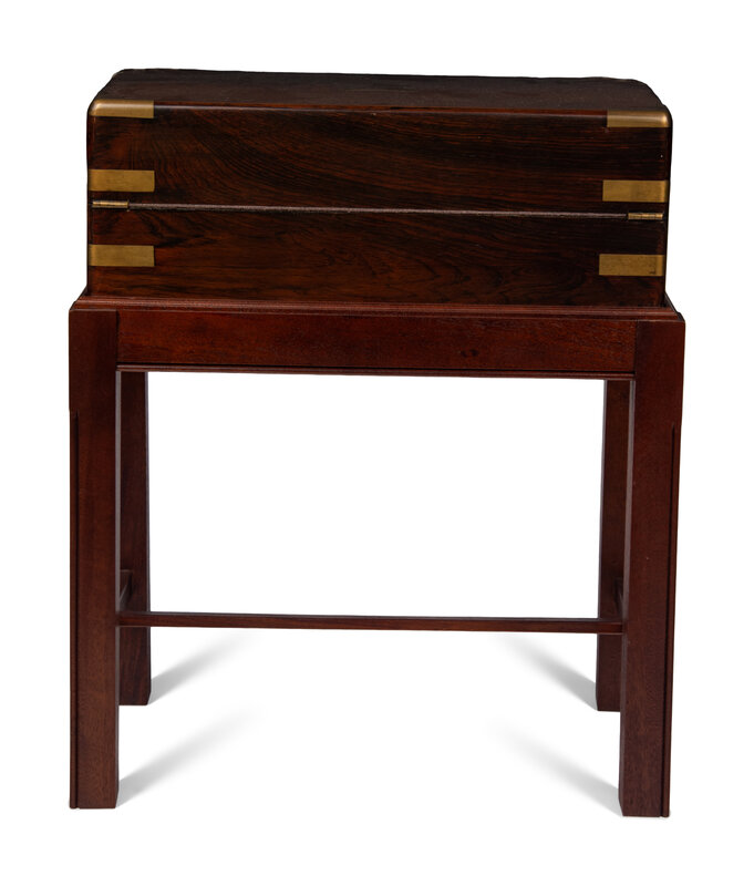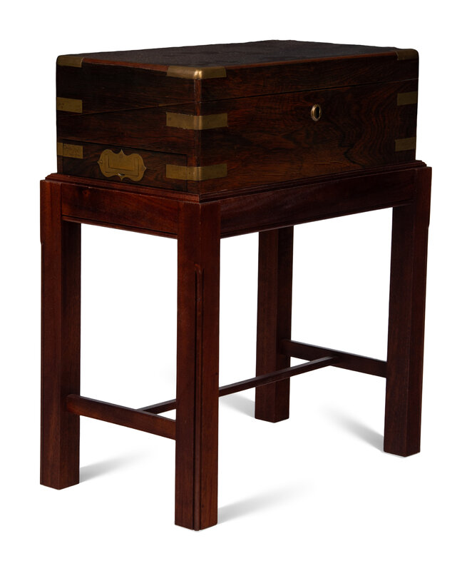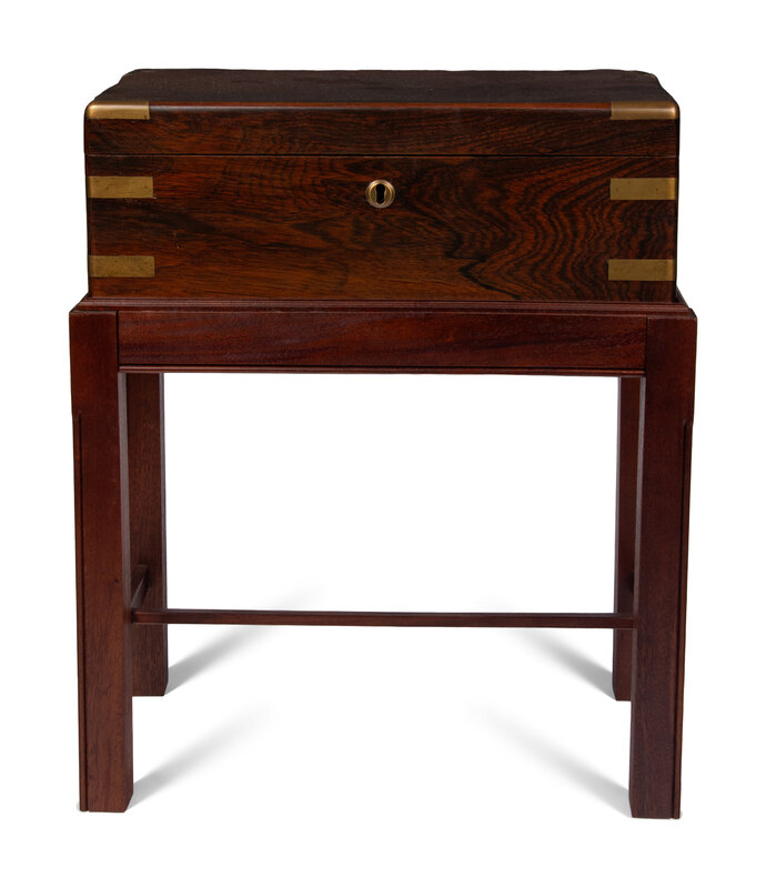 A George III Brass Mounted Walnut Writing Slope on a Later Stand