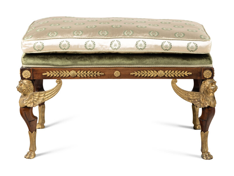 An Empire Style Gilt Bronze Mounted Mahogany Bench