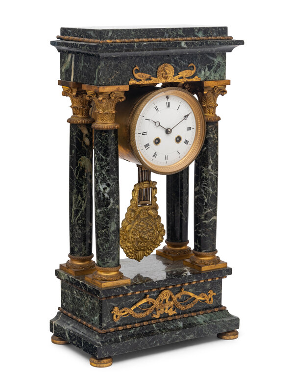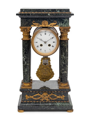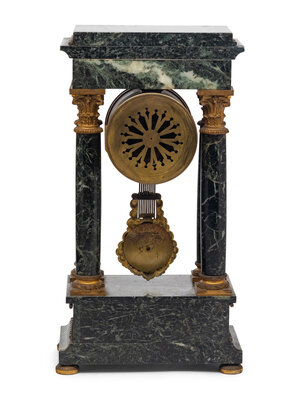 An Empire Style Gilt Bronze Mounted Marble Portico Clock