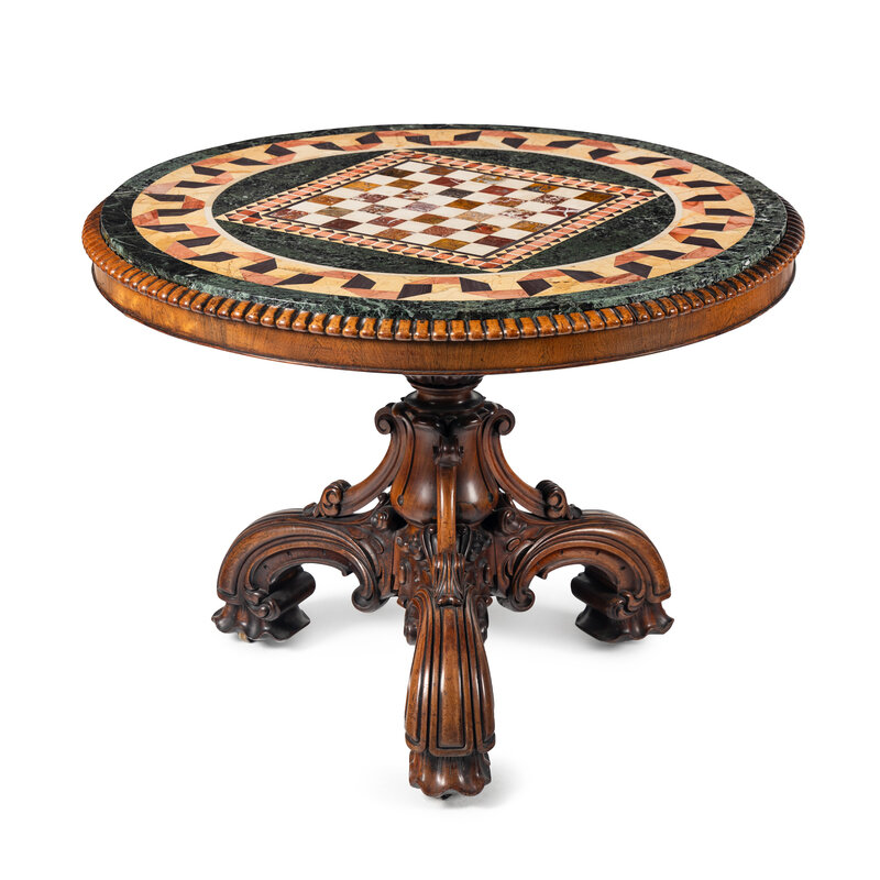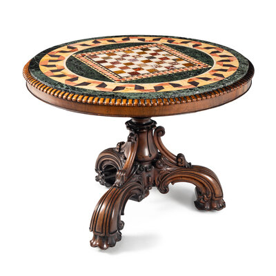A Late William IV Carved Walnut and Specimen Marble Center Table