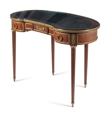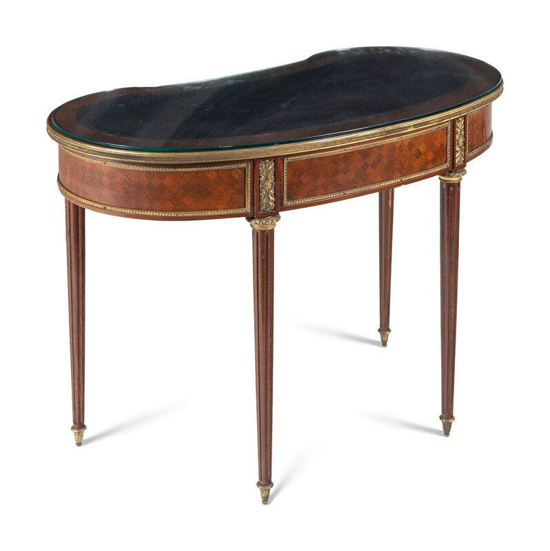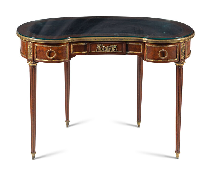 A Louis XVI Style Gilt Bronze Mounted Parquetry Writing Table
