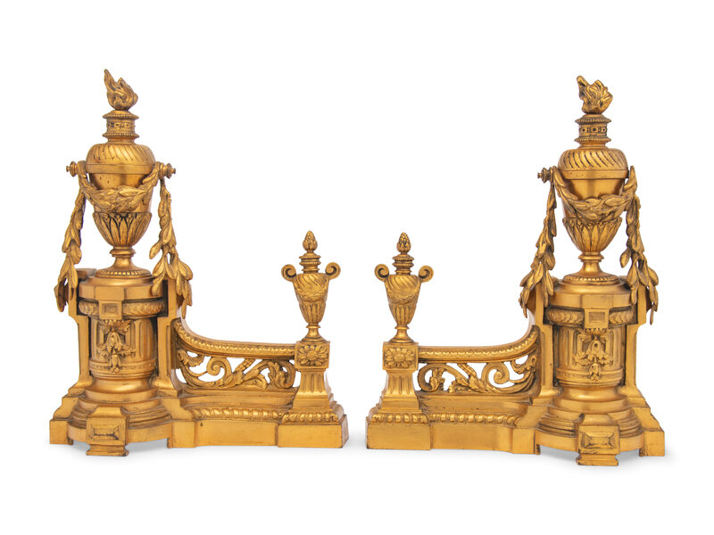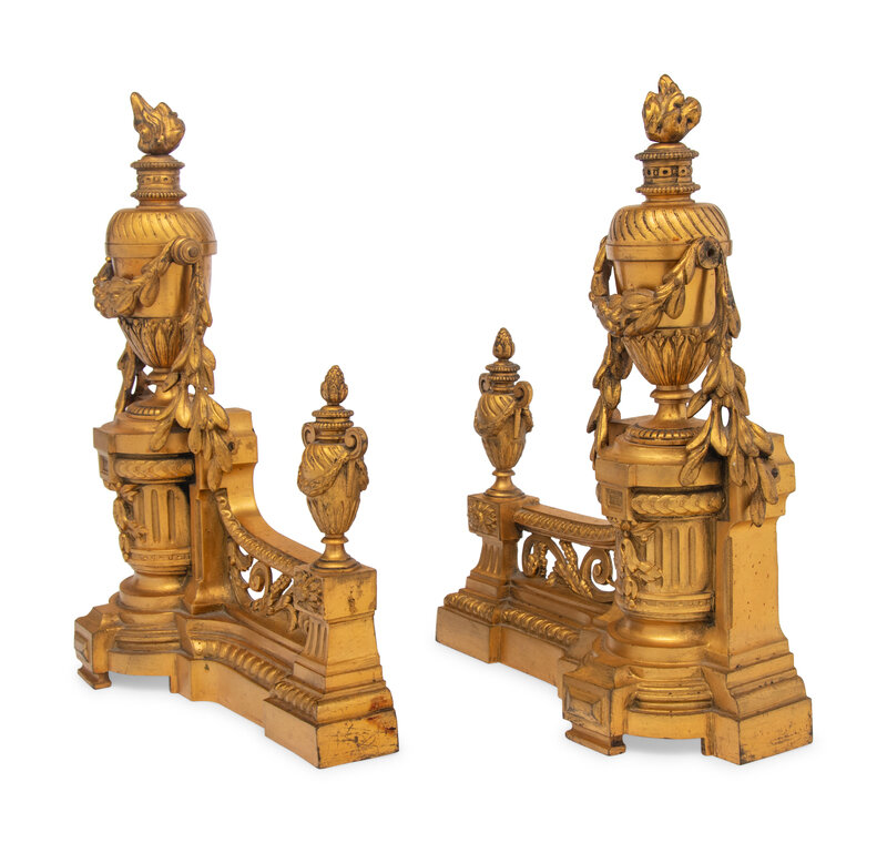 A Pair of Louis XVI Style Gilt Bronze Chenets