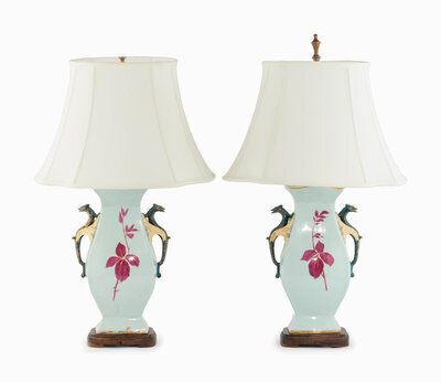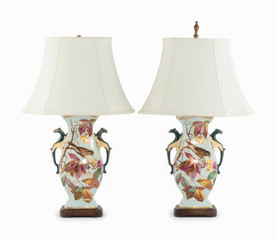 A Pair of Japonesque Porcelain Vases Mounted as Lamps
