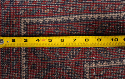 Larger rug: 6 feet 1 inch x 3 feet 5 inches; smaller rug: 4 feet 3 inches x 2 feet 11 inches.
