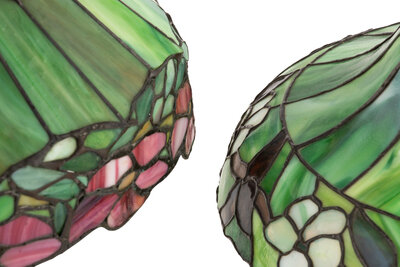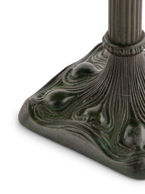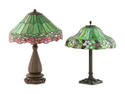 shade of taller lamp stamped 'HANDEL', other shade and both bases are unmarked.