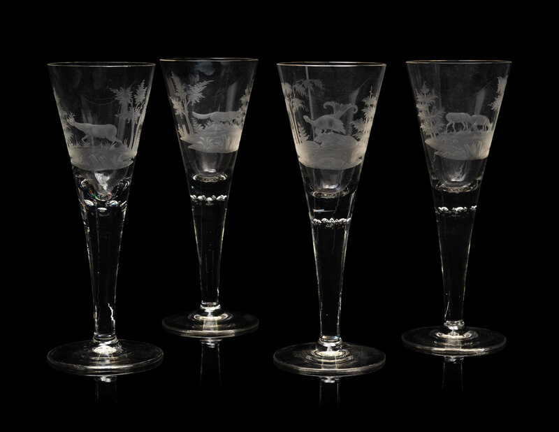 each engraved to depict a fox, a stag, deer or a wild turkey.