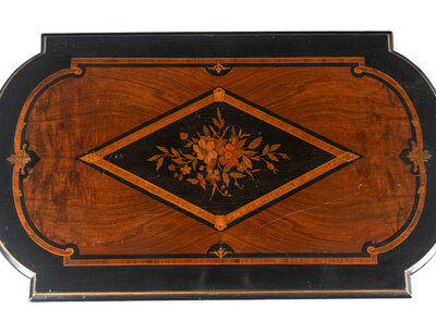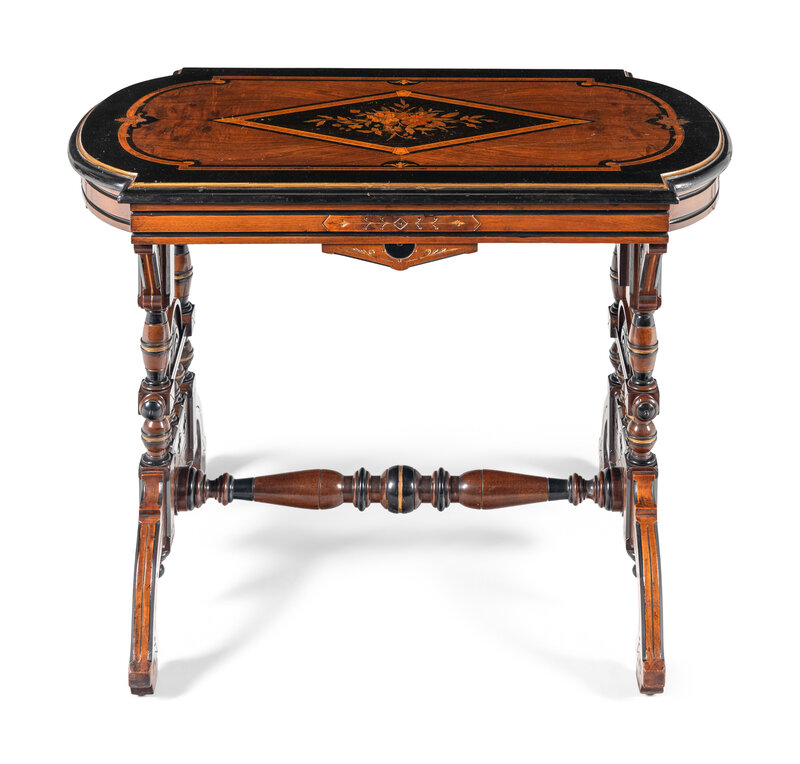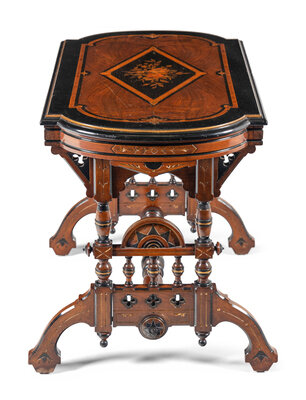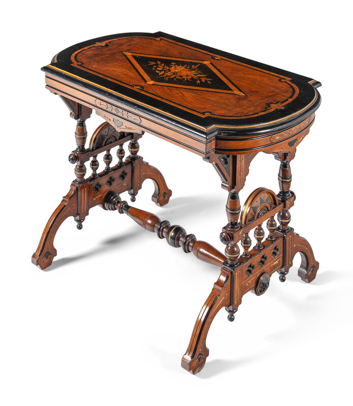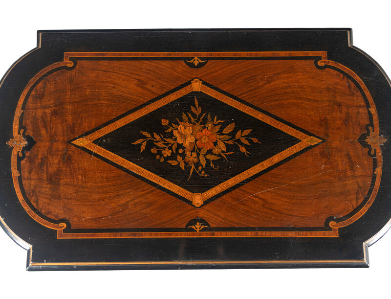 An Aesthetic Movement Part-Ebonized Walnut and Marquetry Side Table