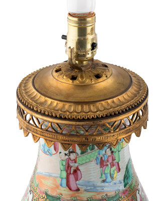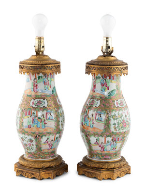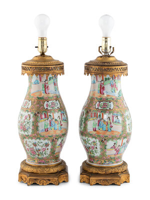 A Pair of French Gilt Bronze Mounted Rose Medallion Porcelain Vases