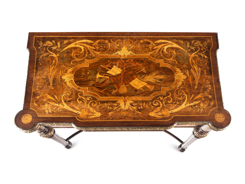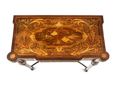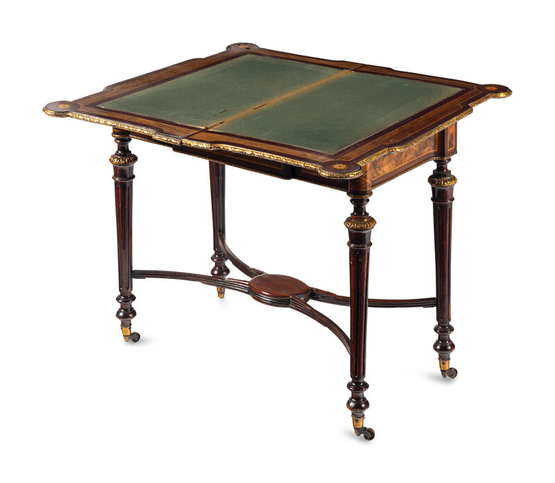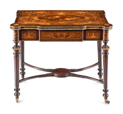 A Napoleon III Style Gilt Bronze Mounted Mahogany and Marquetry Flip-Top Game Table