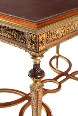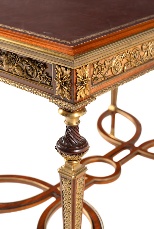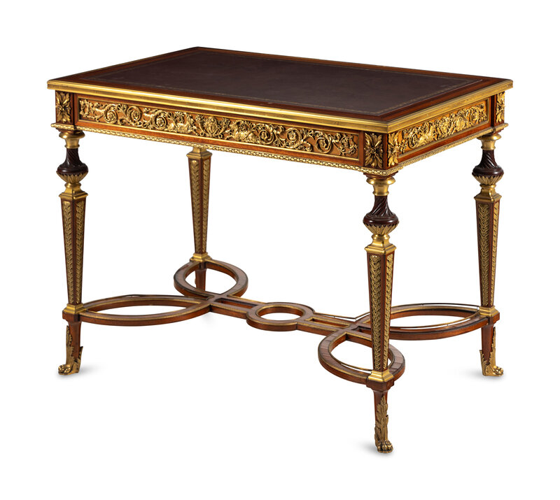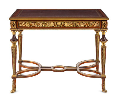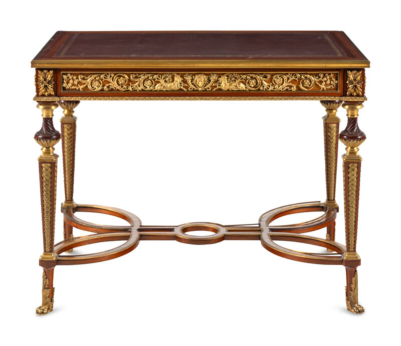 A Louis XVI Style Gilt Bronze Mounted Mahogany Writing Table