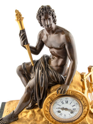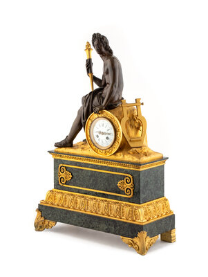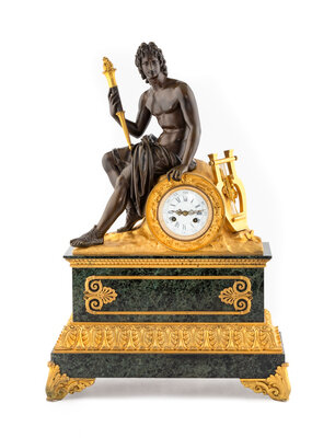 A Louis Philippe Gilt and Patinated Bronze and Marble Mantel Clock