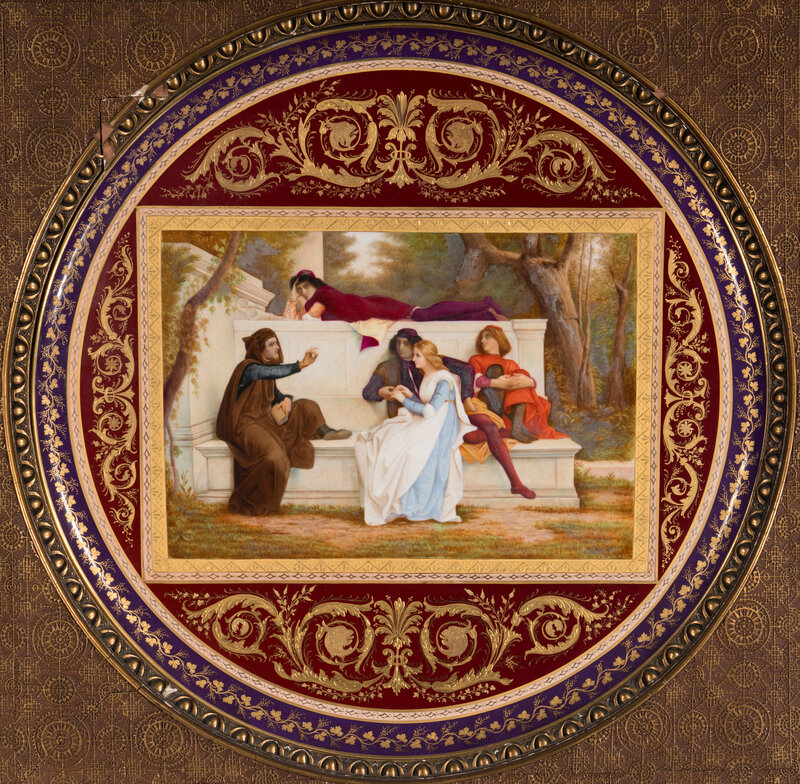 depicting Florentine Poet after Alexandre Cabanel (French, 1823-1889); inscribed in German and bearing the beehive mark in blue verso.