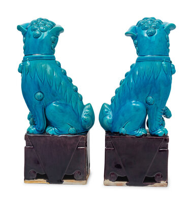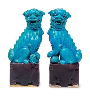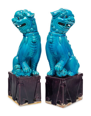 A Pair of Chinese Export Turquoise Glazed Guardian Lions