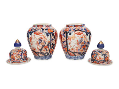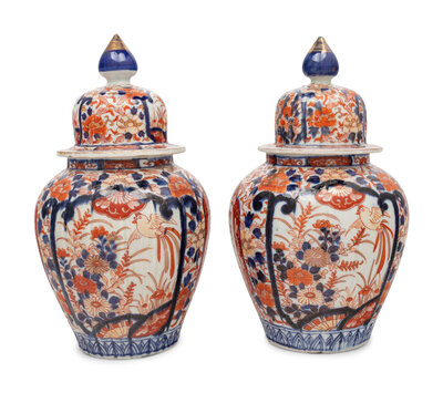 A Pair of Imari Palette Porcelain Jars
