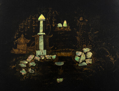 the tray inlaid with mother of pearl.