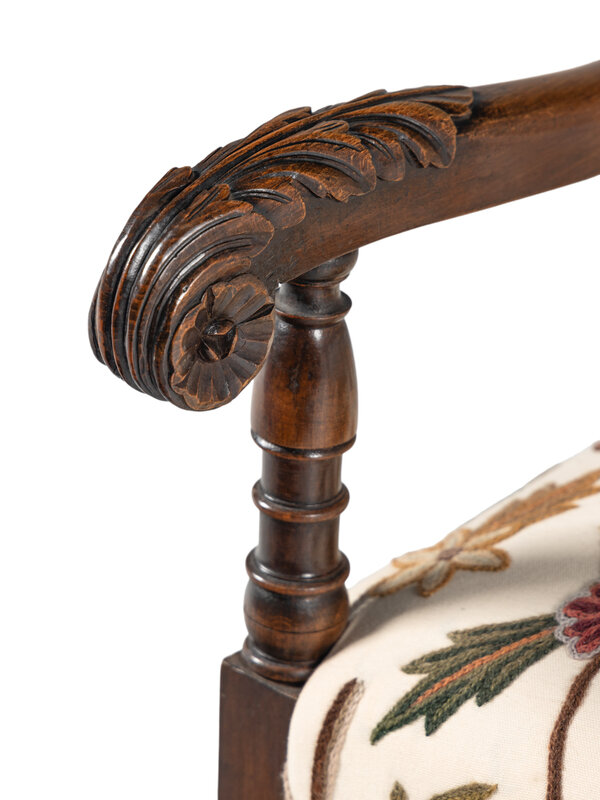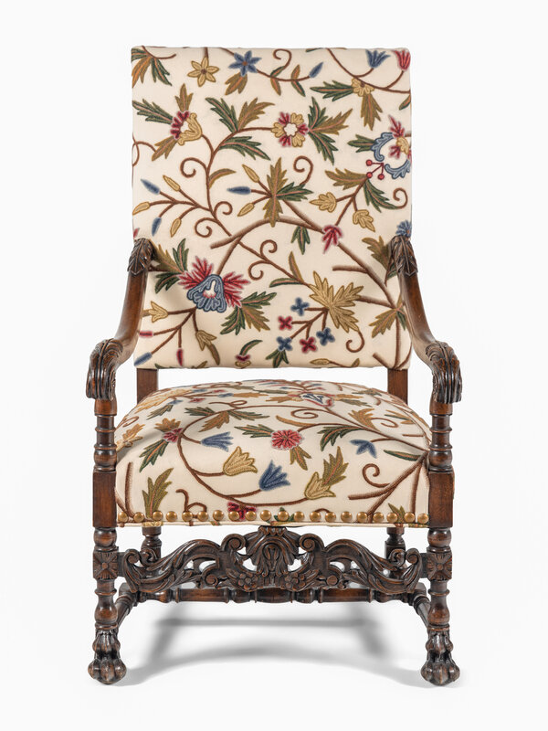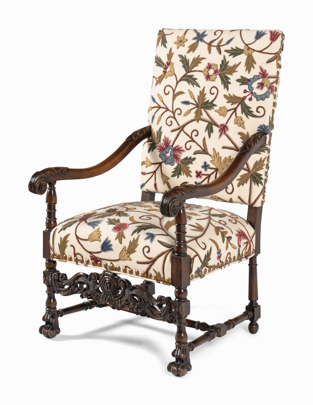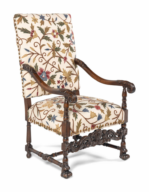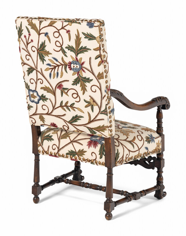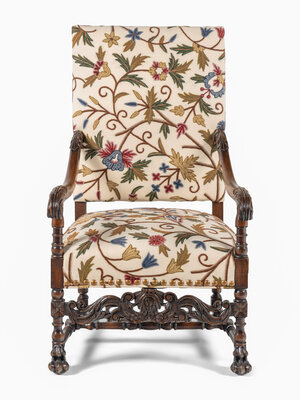 A William and Mary Style Walnut Armchair with Crewelwork Upholstery