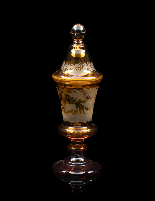 A Collection of Bohemian Amber Cut to Clear Glassware