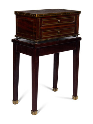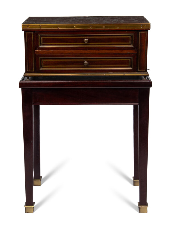 A Directoire Style Mahogany Marble-Top Chest on a Stand