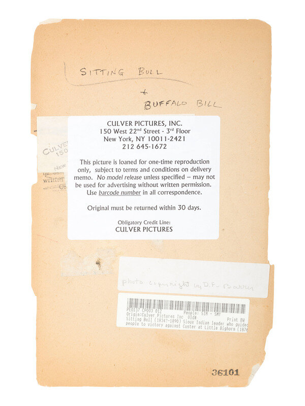 6 x 10 in. silver gelatin photograph flush mounted to paper. Copyright printed and blind stamped in the image by D.F. Barry. Verso with multiple inscriptions, stamps, and paper labels identifying the print to Culver Pictures, Inc.