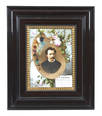 depicting a self-portrait of the professor within a painter's pallet, signed and dated 1887, set in a parcel giltwood frame.