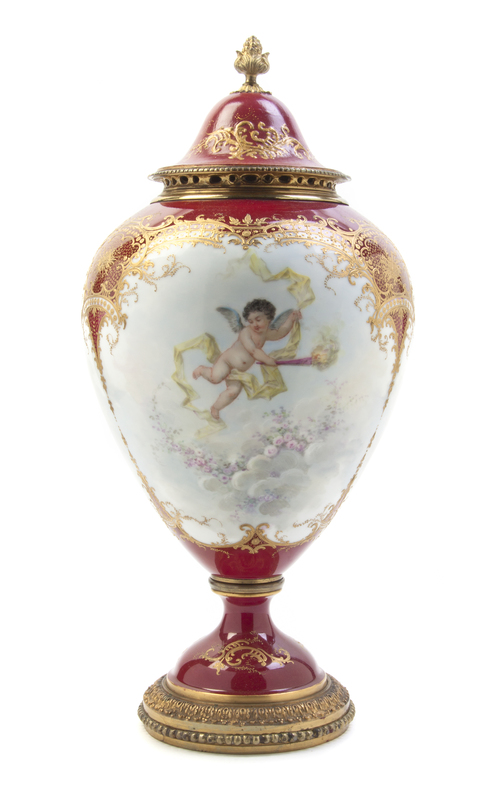 A Sevres Style Porcelain and Gilt Metal Mounted Urn,