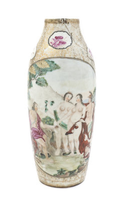 circa 1800, of elongated ovoid form, decorated with scenes of classical figures in landscapes.
