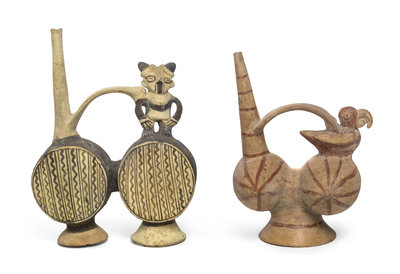 Two Pre-Columbian Terracotta Stirrup Vessels, Chancay,