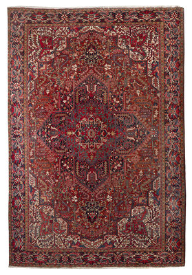 having a stylized foliate center medallion on a red reserve within multiple borders.