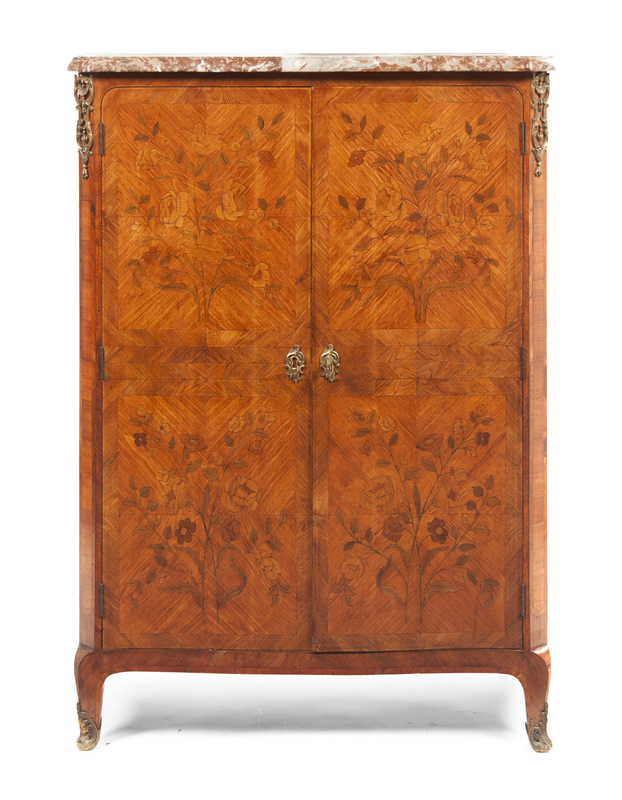 A Louis XV Style Marquetry and Bookmatch Veneered Linen Press,