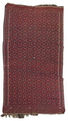 having repeating geometric decoration on a red ground within triple borders.