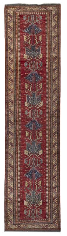 centered with repeating geometric medallions on a red ground within multiple borders.