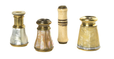 comprising three single pull mother-of-pearl veneered examples and a fixed ivory veneered example.