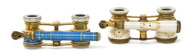 Two Pairs of Continental Guilloche Enameled Opera Glasses,