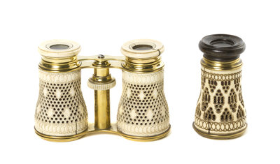 with pierced repeating decoration throughout, together with a German ivory veneered monocular Conr. Schroder, Nernberg, also with repeating pierced decoration.