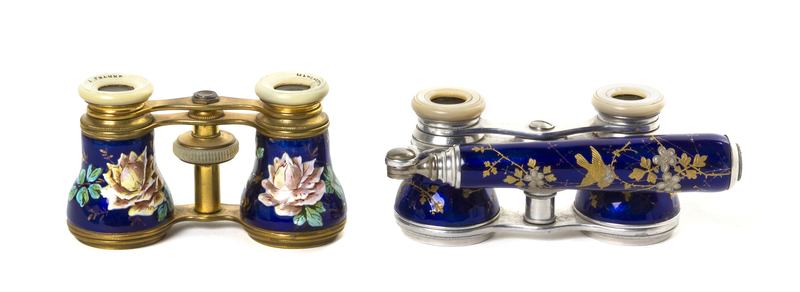 the first Franks, Manchester, with foliate decoration on a cobalt ground the second unmarked having bird and foliate decoration to cylinders and matching handle.
