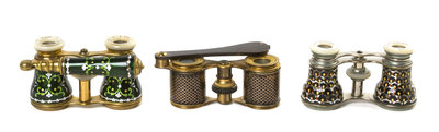 the first by Chavance & Co., Paris, having conforming scrolling decoration to barrels and handle, the second with allover stylized foliate decoration and the last Bautain, having repeating geometric decoration.
