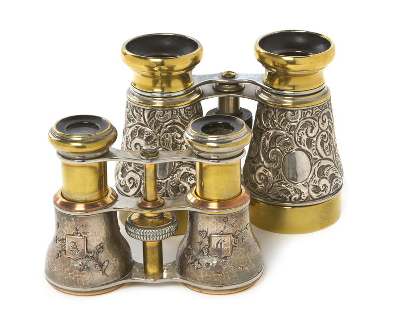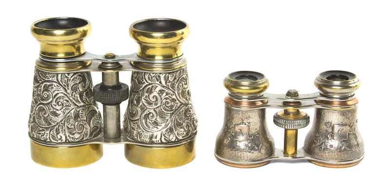 Two Pairs of Continental Silver or Silvered Metal Cased Opera Glasses,