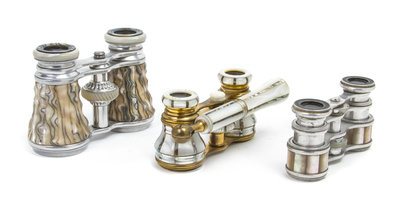 Three Pairs of Continental Mother-of-Pearl Veneered Opera Glasses,