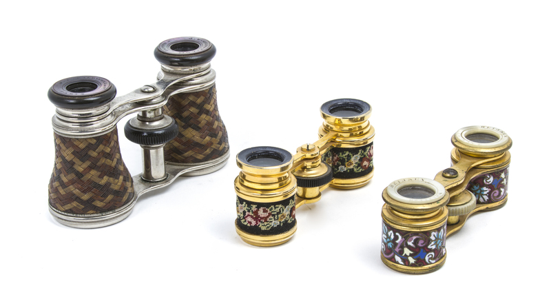 each with various decorations, one with woven leather, the second enameled, and another example.