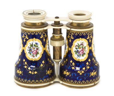 A Pair of French Enameled and Ivory Inset Opera Glasses,