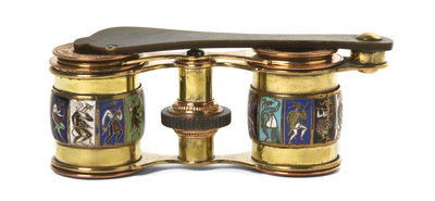 A Pair of French Champleve Decorated Opera Glasses, Brevet,