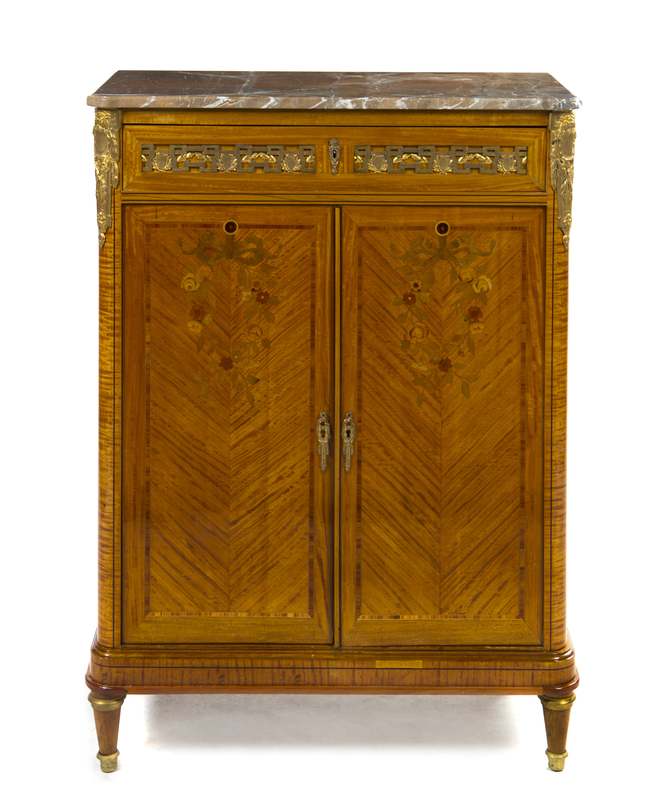 A Louis XVI Style Marquetry Console Cabinet,