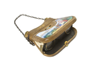A Pair of French Enameled and Tooled Leather Opera Glasses, A. Gualdoni,