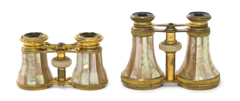 Two French Mother-of-Pearl Veneered Opera Glasses,