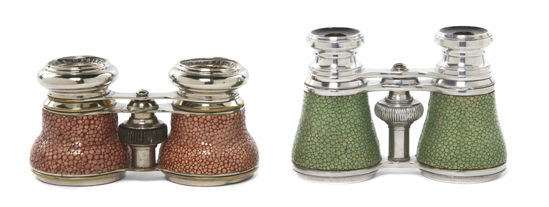 Two Pairs of Shagreen Mounted Chromed Opera Glasses,