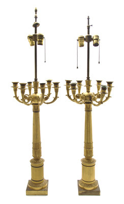 A Pair of Gilt Bronze Six-Light Candelabra,